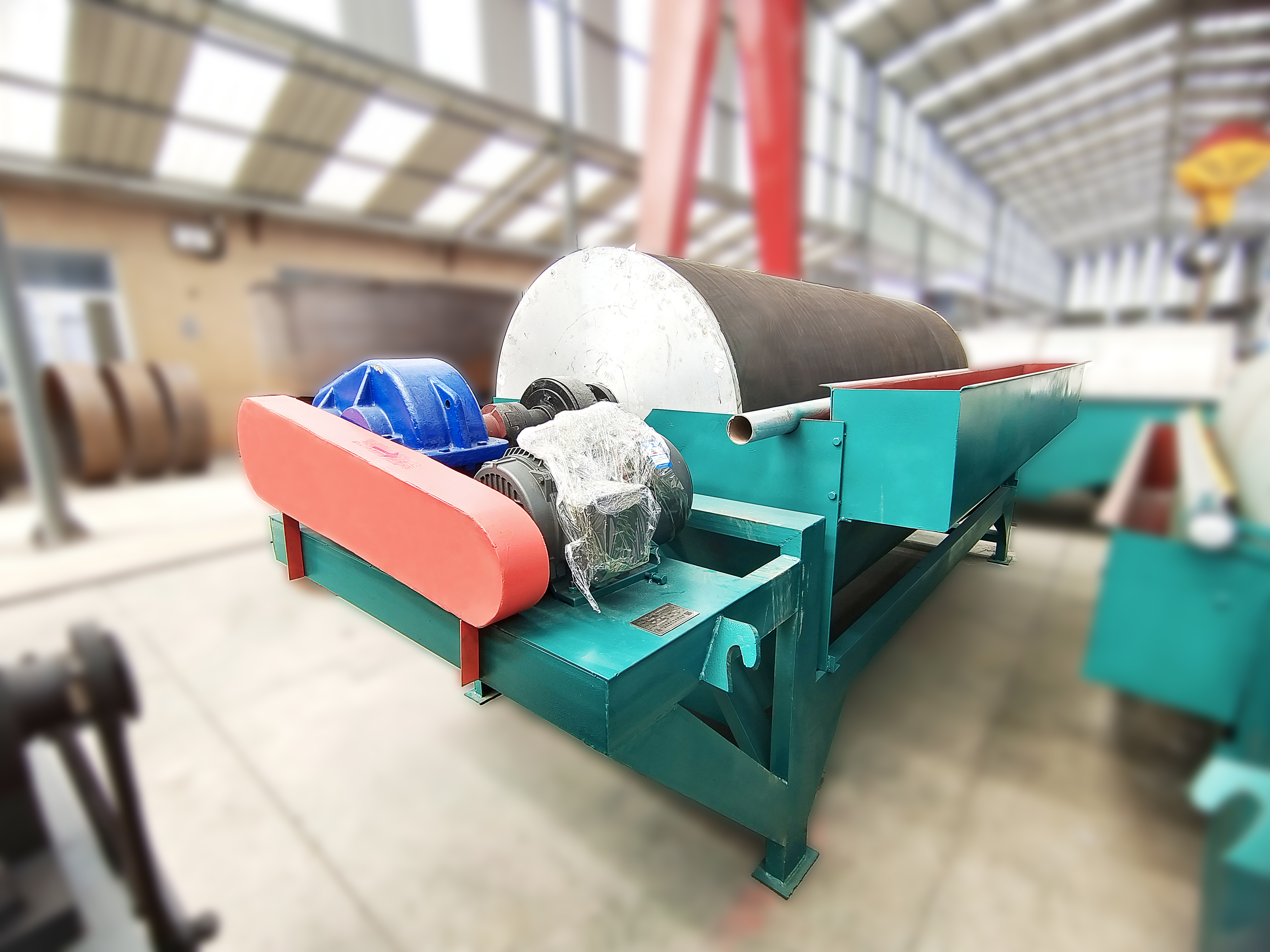 其原理是當礦漿進入磁場區時,其中強磁性礦物被吸附在圓筒表麵,弱磁性和非磁性礦物被水流衝洗排出,而吸附在圓筒表麵上的磁性礦物隨圓筒旋轉,被帶出磁場區,用衝洗水衝入精礦槽中,完成分選作業。
